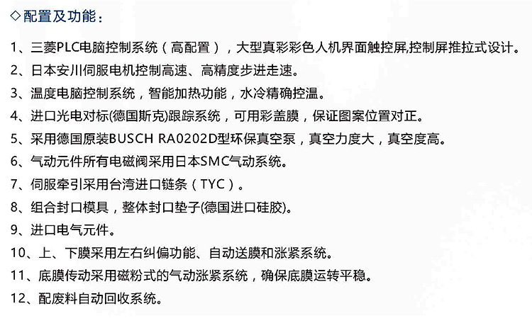 溫州瑞馳包裝設備有限公司是一家集研發、制造、銷售全自動真空包裝機于一體的科技型企業,公司全力打造的瑞馳真空包裝機在同行業中享有較高的榮譽和信譽。公司研發生產的RC-420、RC-520等系列的全自動雙面拉伸膜真空包裝機全自動連續拉伸膜真空包裝機、全自動連續拉伸硬盒真空充氣包裝機、辣條棒全自動生產線等系列。并根據客戶需求配置自動上料系統、輸送系統,提升系統等形成成套的包裝流水線等系列產品。借助技術優勢、憑借可靠的質量、穩定的性能和周到的售后服務,使瑞馳產品遍布**各地,還遠銷全球多個國家和地區。